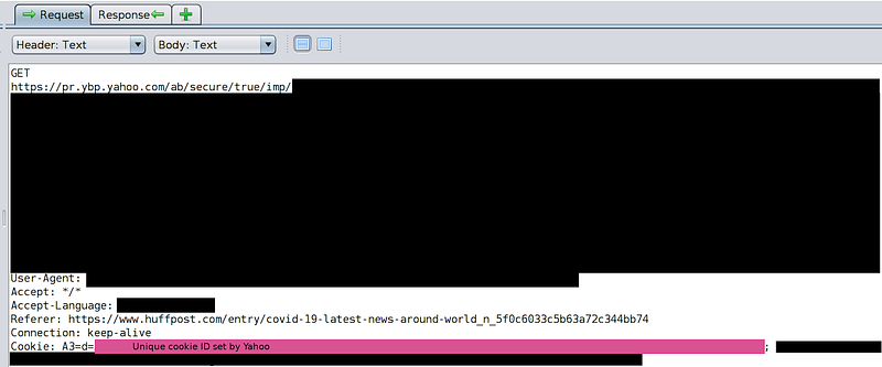 Examining the proxy logs for when this ad was delivered shows that the immediate request for the ad was tied directly to the Yahoo ID set on the College Board site. This screenshot shows a request that is part of the display of the ad: